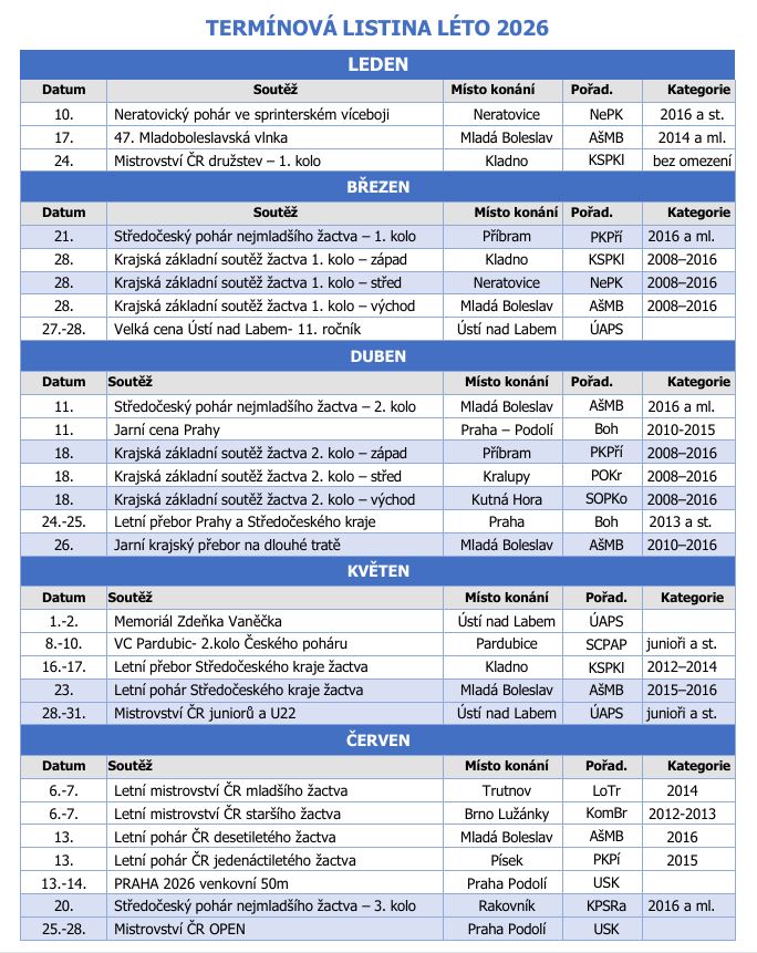 Plavci mohou být přihlášeni i na jiné závody, které v termínové listině nenajdete, proto berte termínovou listinu pouze jako orientační.